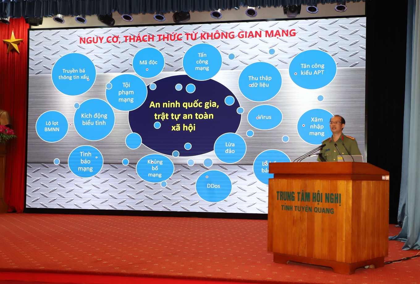 Hội nghị cũng được nghe báo cáo viên của Công an tỉnh quán triệt Luật An ninh mạng; Nghị định số 53/2022/NĐ-CP ngày 15/8/2022 của Chính phủ Quy định chi tiết một số điều của Luật An ninh mạng.