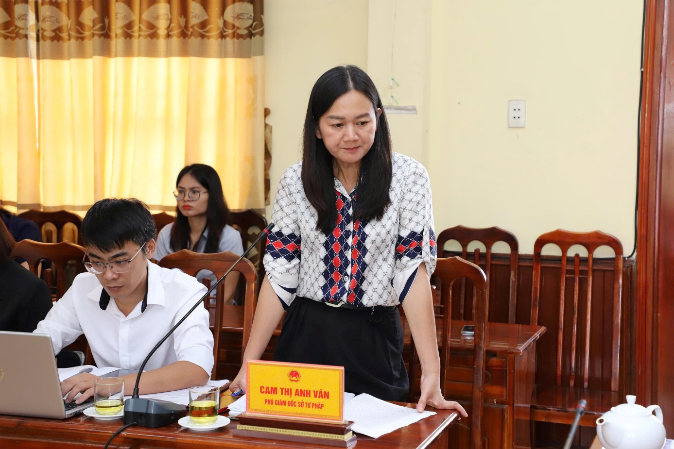 Đồng chí Cam Thị Anh Vân, Phó Giám đốc Sở Tư pháp phát biểu tại Hội nghị